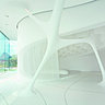 L’architecture du Leonardo Glass Cube est constituée de deux éléments opposés: une enveloppe en forme de parallélépipède, dont la géométrie stricte contraste avec la liberté des lignes de l’espace intérieur. De majestueuses structures blanches (les «genetics») forment un lien entre les différentes zones du bâtiment. La façade en verre reprend le motif conceptuel des «genetics» en deux dimensions. Les piliers spectaculaires de la façade, tout comme les colonnes organiques de l’espace intérieur, sont fabriqués en Hi-Macs blanc. Leur forme parfaite est bien entendu obtenue par thermoformage. Les ouvertures vitrées créent l’illusion d’une parfaite intégration dans l’environnement. Ainsi l’architecture et la nature ne font plus qu’un. Le traitement et l’absence de joints apparents de la pierre acrylique Hi-Macs donnent l’impression d’avoir des colonnes de taille infinie. Il n’y a pas d’arêtes. Les formes organiques donnent à l’espace une dimension futuriste.