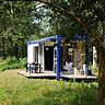 Il n’y a pas que la cabane en bois pour passer des vacances au vert. Celle-ci est plutôt de type industriel et affirme aussi son respect de l’environnement. Ses cloisons coulissantes permettent de structurer l’espace en fonction des besoins de la journée et de la nuit. Une cuisine et une salle de bains parfaitement équipées, des rangements astucieux et des aménagements « gain de place » qui exploitent le moindre cm² : un vrai bonheur que l’on peut installer partout, même en pleine forêt !