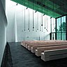 Ces cloisons ajourées qui séparent l’intérieur de la chapelle de l’extérieur offrent un jeu de lumière et de reflets révélant une palette riche de ce cuivre, entre le vert amande et le turquoise. Pour la toiture, le choix d’un cuivre vert pré-patiné a été choisi aussi bien pour sa dimension culturelle, évoquant le toit des églises anciennes, que pour sa durabilité, résistant aux conditions climatiques difficiles de la région.