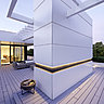 Ici, le rôle de l’HI-MACS® n'était pas seulement d'habiller et de protéger, mais aussi de dessiner et d'exploiter au mieux l'espace. « Ce matériau permet un niveau de précision que l'on retrouve seulement dans l'ameublement », explique l'architecte Jan-Erik Gerdt, responsable du projet, qui n'avait jusque-là utilisé HI-MACS® qu'en intérieur. Il a choisi ce matériau Solid Surface, non seulement, en tant que matériau adapté à la construction de façades, mais aussi, pour ses qualités intrinsèques capables de résoudre toutes les difficultés du chantier : « Les murs inclinés, les bords disgracieux des locaux et l'évacuation d'eau ne devaient pas seulement être habillés, mais aussi nivelés à l'aide d'un mur-rideau en HI-MACS®». Des solutions techniques adaptées ont été trouvées grâce à une collaboration rapprochée entre le cabinet d'architectes et les spécialistes du matériau Solid Surface de l’entreprise Kiebitzberg. Spécialement étudiés pour des applications extérieures, les éléments HI-MACS® ont été assemblés sur place par des spécialistes de cette entreprise, sur une sous-structure en aluminium et fixés par des ancrages à cale allégés invisibles de l'extérieur.