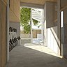 Un dénivelé traité en talus accompagne le jardin, commun à tous les habitants, jusqu'au sous-sol et lui offre une vraie façade lumineuse. Un traitement précis et soigné du filtre sur rue (claustra bois...), sans le dévoiler totalement en toute sécurité rend le jardin entièrement visible. Une passerelle permet de relier, au-dessus du vallon, la dalle du rez-de-chaussée au fond du jardin. Le toit de l’immeuble, autre lieu d'échange et de rencontre, est aussi commun et occasionnellement ouvert aux riverains. Il permet d'installer la plus grande partie gérées par une association spécialisée. Les habitants sont invités à prendre possession des lieux sans qu'il n'y ait aucun cloisonnement (autre que les refends structurels), puis à régler définitivement l’agencement des espaces après un temps d'usage. Ainsi les lots techniques sont traités indépendamment du second œuvre pour des projets de finition en auto-construction.