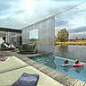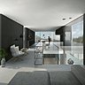 La cabine de pilotage a été conservée pour que la nouvelle péniche garde sa fonctionnalité d’origine. Une piscine à débordement relie l’habitation à son élément naturel. L’organisation sur trois niveaux s’effectue autour d’un escalier central installé dans une trémie élargie et lumineuse, en prise directe avec le paysage environnant. Une baie fixe toute hauteur renforce l’idée de flottement et de lévitation au-dessus du cours d’eau. Et la péniche attend un repreneur pour mettre en œuvre ce projet de maison pas comme les autres !