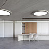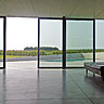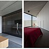 Le béton brut est volontairement laissé visible. Ses douces nuances de gris et son aspect velouté sont mis en valeur et en relief par une mise en œuvre particulièrement technique. Les murs en béton coulé ont nécessité l’utilisation de panneaux de coffrage aux parois lisses, pour obtenir un résultat parfait et un effet de texture délicat comme une peau. Les murs intérieurs et les dalles de plafond ont été aussi fabriqués en béton apparent. Ces revêtements s’accordent avec le sol et la longue table de la salle à manger fabriquée dans le même matériau.