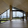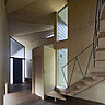 Dans la Villa Escargot, le bois de contreplaqué souligne la continuité des surfaces qui se succèdent et accentue la volumétrie de l’architecture.