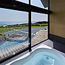 A l’extérieur, la toiture et ses nombreuses formes triangulaires sont des pentes de drainage, qui se marient avec la minéralité de la pierre et les éléments de végétation du site. Il n’y a pas de rupture entre l’intérieur et l’extérieur ; une conception toute japonaise !