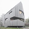 Construite sur une parcelle étroite, cette maison ne pouvait s’ouvrir sur ses mitoyens. Cette contrainte du PLU a déterminé sa forme anguleuse qui s’oriente et s’ouvre largement sur la rue. Côté habillage, elle est enveloppée d’un manteau de mélèze pré-grisé qui investit tout le volume avec des arêtes à vif sans couvertine, jusqu’au pli de la façade principale qui ouvre une perspective sur le jardin. Une clôture en acier galvanisé ferme le terrain et assure la sécurité de cette construction très visible de la rue, mais dont l’entrée est située en contrebas.