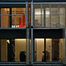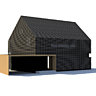 Le binôme d’architectes a pris le parti de dessiner une maison traditionnelle par sa forme, avec un toit à double pente, mais a entièrement recouvert l’ensemble de la bâtisse de bambous horizontaux. Sur la façade Sud, ils ont été travaillés sous forme de volets en accordéon, seuls éléments ouvrables de l’habitat.