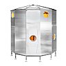 Ce module est composé d’une structure métallique avec un mât central qui porte à son sommet un grand parasol de 12 baleines. Démontable et installé en trois jours, facilement transportable à dos d’homme, il est doté d’une charpente en matériaux industriels et de panneaux d’aluminium. Il repose sur des pilotis stables qui permettent une installation sur les tous terrains, même accidentés et escarpés.