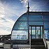 Pour valoriser les façades du bâtiment des années 1930, l’agence DTACC a supprimé les allèges du rez-de-chaussée pour augmenter l’ampleur de l’étage, hiérarchiser ses proportions et éviter les obstructions visuelles dans les espaces devenus flexibles et ouverts. Les faux planchers ont permis de réduire les allèges à tous les étages, et d’optimiser les vues vers l’extérieur. On a démoli la toiture en SHEDS du patio central pour organiser une cour avec verrière et un jardin intérieur. Toutes les façades intérieures bénéficient d’une exposition en premier jour et drainent la clarté dans les bureaux. Les tuiles des deux coupoles, qui servaient autrefois de réserves d’eau pour les pompes d’incendie, ont été remplacées par des dômes en verre. Car ces espaces bénéficient d’une vue imprenable sur le parc de Saint-Cloud et la Seine. Le lobby, à la façon d’un hôtel, offre un espace d’accueil en deux temps : un grand comptoir courbe oriente le visiteur vers la cour intérieure, qui se compose d’une micro-architecture étonnante : une verrière supportée par une structure en bois lamellé-collé, à la fois légère et forte…