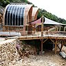 Raisonné et responsable, le site est 100 % autonome : il est éclairé par le soleil via des Leds, et grâce à des panneaux photovoltaïques intégrés aux bâtiments ; il est auto-épuré par une micro station d’épuration sans énergie. Cette construction réversible à énergie positive se prolonge par une immense terrasse suspendue dans la falaise, et composée de pins et de châtaigniers de la région. L’intérieur des ogives est doté de murs et de plafonds végétaux qui contribuent au confort esthétique, climatique et acoustique.