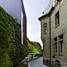 Agrandissement de l’hôtel particulier Bouctot-Vagniez, édifice remarquable de l’Art nouveau des années 1900, et Chambre de Commerce et d’Industrie d’Amiens, préfecture de Picardie ; le bâtiment est posé sur un socle végétal qui assure la liaison avec l’existant et le jardin. Les volumes construits, très contemporains, abritent des bureaux les plus compacts et les plus en retrait possibles, par rapport à l’édifice ancien. Les deux bâtiments confrontent leurs architectures et se mettent en valeur mutuellement. Le nouveau bâtiment, achevé en 2012, a permis de mettre en œuvre des procédés innovants et de pointe, notamment dans la mise en place de la charpente et des murs végétaux complexes. Côté rue, la façade est recouverte d’un manteau en résille métallique, dont le motif est inspiré par le jeu de briques multicolores des édifices voisins. Cette couverture ajourée permet une ventilation naturelle, et fait office de brise-soleil.