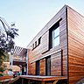 C’est une maison de vacances pour un couple de londoniens qui travaille à l’étranger. Mais ils avaient surtout acheté la maison pour son emplacement. « On a coupé le balcon qui créait un pont thermique avec l’habitation et on a supprimé le petit avant-toit inutile. Et on a aménagé une terrasse métallique indépendante de la maison. La maison en maçonnerie se love dans une deuxième maison en ossature bois, qui lui offre une excellente isolation aux performances énergétiques supérieures à celles réclamées par la RT 2012 », raconte Julien Vincent de Whyarchitecture.