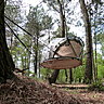Toujours en Bretagne, le domaine de la Vallée de Pratmeur s'étend sur 25 hectares. Ce camping propose une version luxe de la cabane perchée : la Canopée-lodge. Construite sur pilotis de 7 mètres, au-dessus de la cime des arbres, cette cabane est aménagée en deux étages, afin de loger 4 à 5 personnes. Tout le confort est là : salle de bains, toilettes, kitchenette, séjour éclairé par de grandes baies vitrées, télévision à écran plat, et même chauffage pour les séjours hors-saison. La plus grande terrasse - 25 m² - offre une vue complète sur la vallée. Un second balcon accueille des transats, pour un farniente perché au milieu des arbres.