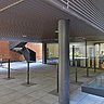 Les bacs en VMZ Profil Sinus sans recouvrement sont mis en œuvre sur les parties pleines de la façade. Faisant usage de brise-soleil et venant renforcer l’effet de masse du bâtiment, ils ont reçu un soin particulier par l’entreprise de pose Delbes, lors de la recoupe. La volonté des architectes consistait à conserver une continuité visuelle depuis l’intérieur des locaux sans surépaisseur liée au recouvrement habituel de plaques. La volumétrie est lisible sans détails superflus, et toutes les configurations de façades ont été résolues avec un unique matériau.