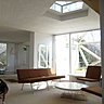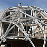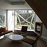 L’habitation « Trois Coupoles » offre une surface habitable d’environ 165 m² distribués sur 2 niveaux. Quant à la Géode, construite en 1970, sa structure géodésique apparente, avec résille en béton armé, accueille, sur 3 niveaux, une surface totale de 200 m² environ, un séjour et salon, 3 chambres, 2 salles de bains. La forme de l’habitat composant une voûte a été dessinée à partir de l’étude des polyèdres, formes géométriques à 3 dimensions avec faces planes polygonales, qui permettent d’obtenir un maximum de volume avec un minimum de structure. La structure en béton a été coulée sur place au moyen d’un coffrage en bois. Un escalier elliptique mène au 1er étage qui accueille la pièce à vivre regroupant dans un volume unique, la salle à manger, la cuisine et le salon doté d’une cheminée et ouvrant sur un jardin suspendu. Deux chambres et une salle de bains complètent ce niveau. La cuisine et les chambres offrent des points de vue variés sur la forêt. Un escalier permet d’accéder au dernier étage composé d’un large salon et d’une terrasse. Les terrasses, le jardin suspendu et les grandes baies orientées ouest s’ouvrent sur le paysage, le ciel et la végétation et créent des variations de lumière qui rythment l’espace intérieur sur la nature. Les passages entre les espaces habités et les espaces semi-ouverts et l’extérieur sont remarquablement traités.