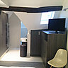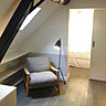« La difficulté principale du chantier provenait du sol qui présentait une pente de 10 à 15 cm due à un affaissement de l’immeuble, datant du XVIIème siècle ». Philippe Demougeot s’est servi de cet inconvénient, pour créer une différence de niveau dans la pièce de vie principale. Ainsi la séparation du coin salon et du coin repas surbaissé se fait doucement, sans réelle rupture, tout en conservant la fluidité de l’espace, devenu traversant après suppression des cloisons. L’espace cuisine s’ouvre désormais sur la pièce principale, caché par un petit muret, à la manière d’un faux bar. Tous les rangements ont été intégrés, pour offrir un maximum d’espace et faciliter la circulation. Seul le « mobilier de plaisir », sièges, tables et objets décoratifs animent la pièce à vivre avec son coin salle à manger et son salon cosy. Une salle de bains ouverte sur la chambre donne à tout l’espace une ambiance chaleureuse et feutrée. Il y a même une buanderie pour entreposer le lave et sèche linge.