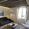 Ce duplex, situé dans cet immeuble parisien du XVIIème classé, ne manquait pas de charme, avec ses plafonds aux poutres apparentes blanchies. Mais il était temps d’intervenir sur le gros œuvre et la mise aux normes des installations. Quant à la cuisine, elle mangeait une partie de la pièce à vivre. Il fallait aussi changer les fenêtres. «La rénovation précédente devait dater des années1960-1970, car les éléments sanitaires étaient signés Courrèges !», raconte Philippe Carillo, décorateur du collectif Créateurs d’intérieur, qui s’est appliqué à donner un nouveau style à ce lieu.