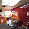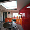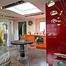 L’intervention de l’architecte a aussi permis l’installation d’équipements techniques pratiques et économiques. Au-dessus de la table de repas, la fenêtre de toit déplacée et agrandie a été dotée d’un détecteur de pluie automatique qui la referme dès les premières gouttes. Une pompe à chaleur réversible qui assure le chauffage l’hiver et apporte une vraie fraîcheur en été. Son système est camouflé dans un meuble et sa prise d’air est juchée sur le toit. Côté éclairage, deux bandeaux lumineux avec spots orientables halogène basse tension, semi-encastrés dans le faux plafond, dotés d’un transformateur et d’un interrupteur avec télévariateur.