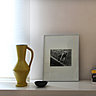 Dans son petit appartement typiquement parisien de 52 m², qui lui sert de show-room, Catherine a complètement restructuré l’espace cuisine, salle de bains et couloir. La salle de bains a été recréée dans la cuisine et la cuisine a été déplacée dans la pièce à vivre. Pas facile de déplacer les évacuations dans un immeuble collectif, sauf si une pente existe pour l’écoulement. C’était le cas, ici, où la tuyauterie a pu être détournée. Et de nombreux rangements ont été crées dans le couloir et la salle de bains. L’espace nappé de blanc coloré, teinté d’une demi-teinte entre gris et beige accueille, des pièces vintage qui se mêlent à des créations d’aujourd’hui ou d’hier rééditées, où le style des années 1950 domine.