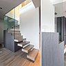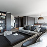En rénovant le premier niveau d’habitation de cet appartement doté d’un grand balcon et d’une terrasse, l’architecte Hélène Paoli a complètement métamorphosé l’espace. Elle a notamment supprimé la différence de niveau de l’estrade qui brisait le grand volume. Tout a été décloisonné. Des rangements ont été créés dans l’entrée ainsi qu’un cabinet de toilette. Et des meubles de rangement aménagés toute hauteur, du sol au plafond, remplacent les murs démolis. Mais contrairement à de simples cloisons, ils offrent une ouverture sur l’espace et une respiration qui facilite la communication. Quant à la buanderie, elle a été réorganisée et l’escalier entièrement repris et ré-habillé.