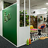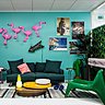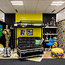 Le style de l’architecte d’intérieur et designer Didier Versavel cultive l’humour et la décontraction. A l’entrée d’Ubisoft, pas de bureau d’accueil traditionnel ou de salle d’attente, mais un plateau polyvalent avec un open space où trône une agora avec des gradins en pin garnis de coussins. Ce bois clair a été aussi utilisé pour fabriquer les bibliothèques de travail dans lesquelles se rangent des assises complémentaires. Et il tranche sur les salles de réunions colorées et espaces atypiques construits comme des décors en boîte. Ils font penser à des mises en scènes de théâtre ou des corners de magasin : Chez Mamie, Le Patio, Dans la chambre d’Ado, En Floride, voici quelques-uns des thèmes esquissés pour créer des espaces de travail informels et en rupture avec les anciens et modèles. Projetés dans des univers riches et inattendus comme par exemple encore Chez Gatsby le magnifique ou Le Cabinet de curiosité, les collaborateurs sont alors invités à développer des échanges créatifs et des idées anticonformistes.