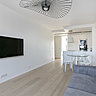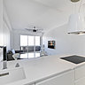 La propriétaire a fait le choix du blanc et du minimalisme pour dessiner un espace épuré avec des détails décoratifs très design. Intégration murale de l’écran TV, plaque de cuisson à fleur de plan, carrelage à fleur de parquet en chêne clair, placards épousant les murs dans la chambre… l’ensemble offre une fluidité qui laisse la place à une décoration de plaisir où toutes les fonctionnalités de l’espace ont été exploitées au maximum avec un minimum de visibilité. Discrétion oblige !