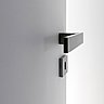 « On a démoli toutes les cloisons pour redessiner un espace qui n’avait été rénové depuis la création de l’immeuble datant des années 1970. » Ainsi la salle de bains a été agrandie et une douche qui occupe toute la largeur de la salle de bains a été aménagée. Elle est séparée de la chambre par une verrière réalisée sur mesure qui laisse passer la lumière et agrandit la perspective de la pièce de nuit. Au-dessus du plan vasque, un grand miroir décuple l’espace. La cuisine intégrée dans la pièce de vie est discrète, mais parfaitement opérationnelle. Et le sol des pièces humides est recouvert d’un carrelage qui délimite leur surface, facilite l’entretien tout en ouvrant les espaces qui se développent sans contrainte ni entrave.