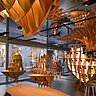 « J’avais énormément aimé le travail de Dominique Jakob et Brendan MacFarlane pour le restaurant Georges au centre Pompidou, cette fantaisie futuriste, qui reste plus de 15 ans après sa création, toujours aussi juste et étonnante. C’est en fréquentant la librairie de Florence Loewy dans le Marais, qui expose des livres d’artistes et pour laquelle Jakob+MacFarlane a construit de fascinantes bibliothèques ruches en contre-plaqué, que j’ai compris qu’il y avait là une base de réflexion pour notre projet de la rue des Francs Bourgeois », raconte le parfumeur Frédéric Malle. Et pour cette boutique, les architectes ont « créé une série d’entailles dans les murs et le plafond pour apporter la lumière. D’abord un éclairage diffus dans les étagères via des panneaux opalescents, puis un éclairage direct au plafond à l’aide de spots. Enfin, chaque flacon de parfum est mis en lumière par un système de rétro-éclairage intégré aux étagères. »