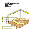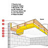 La solution simple pour l’isolation par le dessous consiste à poser un isolant entre ou sous les solives du plafond de l’étage inférieur. Celui-ci est maintenu par des suspentes et des rails métalliques qui servent en même temps de supports pour des plaques de plâtre. L’isolation est meilleure quand les solives sont totalement enrobées dans l’isolant.