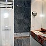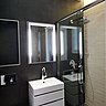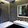 Pour la salle de bains partagée par les deux filles, les Créateurs d’intérieur ont proposé un espace aux lignes épurées. « Nous avons encore dû réduire la surface en doublant le mur dans la longueur de la pièce. Ce doublage nous a permis de pratiquer un vide sanitaire et d’encastrer les réseaux de plomberie ainsi que le mécanisme de la chasse d’eau. Et en partie haute, on a créé des niches de rangement pour les accessoires de toilette et on a encastré un meuble miroir», explique Philippe Carillo. Et pour compenser la perte d’espace, le décorateur a choisi un carrelage 3D qui agrandit visuellement la pièce. Dans la salle de bains du père, après avoir a ôté le marbre, la surface de 6,5 m² est apparue décuplée. Ponctuée par un miroir encadré d’une baguette moulurée, elle se pare d’une petite touche d’ancien, pour le plaisir des yeux…