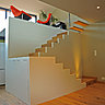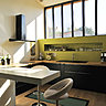 Structurer le second niveau, composé d’un salon de 36 m2 et d’une cuisine de 9 m² c’était l’enjeu principal de ce chantier. L’architecte a créé une cuisine, un coin bar et une salle de bains, avec des rangements sur mesure. En médium laqué, réalisés par un menuisier, ils sont moins onéreux que des meubles standards ou modulaires de spécialistes ou de grandes marques, et répondent exactement aux besoins de l’espace.