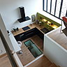 L’architecte a aménagé «les pièces de vie au second niveau, plus lumineux que le rez-de-chaussée abritant un bureau, une chambre et une salle de bains. Un dernier volume suspendu à la toiture traverse l’habitation sur toute sa largeur accueillant une chambre éclairée par un châssis de toit. Un soin particulier à été apporté aux ouvertures et perspectives, à l’image de la grande baie vitrée à l’est, calepinée à la manière des anciennes usines. » Dans le sol, deux trémies vitrées permettent à la lumière de se déployer, tandis que la chambre située au dernier niveau est éclairée par des parois en verre qui dessinent une boîte en lévitation.