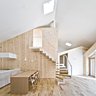 Chambres, bureau, salle de bain, bibliothèque ou garage reprennent la forme iconique de maisons juxtaposées les unes aux autres. Ces petites maisons dispersées donnent l’image d’un village. Ici, les couloirs sont des ruelles et le salon, une « place ». L’architecture joue avec les codes urbains de division de l’espace et forment un paysage d’extérieur en intérieur.