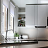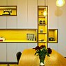 Situé au premier étage d’un immeuble sur cour, cet appartement très sombre intégrait deux chambres disposées de chaque côté d’un couloir. La cuisine et la salle de bains étaient les pièces les plus lumineuses. Quant à la décoration qui appartenait aux anciens propriétaires, elle appartenait au passé et tout devait disparaître ! L’architecte d’intérieur Xavier Gainard a tout d’abord tenté de ramener la lumière naturelle et une certaine clarté dans la pièce à vivre. Puis il a pallié l’insuffisance résiduelle de clarté en composant un éclairage artificiel efficace avec un dispositif important par le biais d’un long meuble équipé de nombreux Leds.