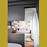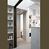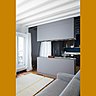 A l’origine, l’espace mansardé situé au 6ème étage d’un immeuble haussmannien présentait une légère pente et 4 fenêtres mono-orientées. Dans ce volume, on trouvait une kitchenette et une salle de bains vétustes. Après avoir abattu deux cloisons, l’architecte d’intérieur Stephan Lanez a créé une pièce à vivre, une chambre et une salle de bains. Le challenge consistait également à optimiser l’espace en dégageant la surface au sol avec des rangements sur mesure intégrés à la nouvelle architecture du lieu. Les petits combles ont aussi permis d’ouvrir des puits de lumière et de pallier au manque de fenêtre dans la salle de bains. Une véritable entrée avec une penderie et un coin bureau matérialisé par un secrétaire ont été aménagés. Un dressing quasi-invisible a été aussi intégré. Et les meubles positionnés à différentes hauteurs créent un volume convivial, tout en ouvrant des perspectives.