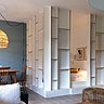 L’architecte d’intérieur Delphine Gaillard a proposé l’implantation de la zone de nuit derrière des claustras. Posé sur une estrade qui fait office de sommier et orienté vers le jardin, le lit permet aussi de profiter de la nature. La hauteur du podium et de la marche a été calculée en fonction de la hauteur des claustras (2,40 m) qui devaient toucher le plafond. Pour optimiser l’espace restant du salon, le coin canapé et détente a été déplacé près de la cuisine, tandis que le coin repas a été installé du côté de l’alcôve. Et une porte coulissante à galandage a été posée à la place du modèle existant battant pour accéder à la chambre de la fille cadette.
