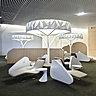Afin de confirmer son positionnement haut de gamme, la compagnie aérienne Air France oriente son architecture intérieure vers le confort de ses installations, dans une vision de bien-être du voyageur. A l’intérieur de son nouveau satellite d’embarquement S4 de Paris-Charles de Gaulle, un espace d’une superficie de plus de 3 000 m2 est laissé à l’imagination de l’agence Brandimage, pour la création d’un salon d’attente et de détente. En partenariat avec l’architecte d’intérieur, Noé Duchaufour-Lawrance, le lieu prend les allures d’un parc revisité à travers le prisme de la modernité, où le thème de la nature marque un net contraste avec l’environnement de l’aéroport. S’il s’agit de recréer l’idée d’une promenade dans un univers végétal, l’architecture joue sur l’évocation à travers des formes, des matières et des couleurs, sans pour autant implanter des éléments organiques.