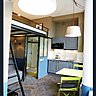 Au-dessus de la salle de bains, on a créé un coffrage pour cacher le chauffe-eau et la VMC. Et on a récupéré en outre de la hauteur au niveau de la cabine de douche. L’installation de toilettes suspendues et la chasse d’eau intégrée dans le mur ont permis d’optimiser encore l’espace au sol. « Avant d’acquérir le local, j’ai visité les caves pour vérifier où étaient situées les arrivées et les évacuations d’eau. Et l’évacuation principale passait justement sous le local ? ce qui m’a permis de l’utiliser pour aménager la salle de bain et de véritables toilettes. Un tuyau d’1mètre de longueur et un raccord en forme de T ont suffi ». Et côté chauffage, un grand radiateur fluide caloporteur (Acova, 2500 W) qui permet de diffuser de façon uniforme la chaleur, tout en respectant le taux naturel d’humidité dans l’air a été installé en soubassement au ras de la verrière.