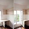 Le premier objectif spatial était dirigé vers un gain en fluidité pour obtenir une circulation principale simplifiée. L’absence de linteaux préexistants a aussi permis d’offrir des proportions généreuses aux portes. La structure a ensuite été consolidée avec de nouveaux battants, conçus sur mesure. Certains n’ont pas été remplacés, afin de favoriser la circulation et la diffusion de la lumière. Une nouvelle porte de 140 cm a été ménagée entre bureau et chambre, afin de ménager de nouvelles perspectives entre les espaces.