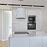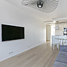 La propriétaire a fait le choix du blanc et du minimalisme pour dessiner un espace épuré avec des détails décoratifs très design. Intégration murale de l’écran TV, plaque de cuisson à fleur de plan, carrelage à fleur de parquet en chêne clair, placards épousant les murs dans la chambre… l’ensemble offre une fluidité qui laisse la place à une décoration de plaisir où toutes les fonctionnalités de l’espace ont été exploitées au maximum avec un minimum de visibilité. Discrétion oblige !