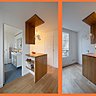 L’architecte a décidé de travailler l’espace pour exploiter au mieux les 34 m² à sa disposition. Il fallait que les occupants puissent se sentir dans un espace plus grand qu’il ne l’était en réalité. Afin de créer un espace à vivre convivial en tirant parti des contraintes existantes, telles que la position des trois fenêtres et du seul accès au réseau d’eau, Mélanie Lallemand Flucher a choisi de démolir des cloisons existantes pour créer une nouvelle organisation spatiale qui favorise l’entrée de la lumière et les vues sur l’extérieur et offre des perspectives qui agrandissent l’espace visuel.