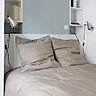 La cuisine n’a pas été transformée, car en excellent état. Le parquet flottant existant n’a pas été changé. La salle de bains entièrement refaite offre un rangement ouvert sous le plan vasque. Pour cacher le lit de la chambre, une cloison, à ses pieds, a été montée. En tête de lit qui prend appui sur la colonne de la cheminée, deux étagères ont été pratiquées de part et d’autre, dans les renfoncements existants. Et de chaque côté de ces rangements, une penderie de 60 cm de profondeur a été aménagée. Bleu ciel dans la chambre, gris bleuté, dans le salon, les murs donnent le ton.