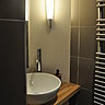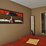 L’agence Nooor a aussi mis un point d’honneur à intégrer tous les objets ramenés de voyage. Leurs matériaux et leurs couleurs ont servi aussi de base et d’inspiration, pour définir un choix de matières, d’harmonies de teintes spécifiques. Telle couleur dominante du tableau a servi de base pour les murs de la chambre. Le mur en schiste aux nuances minérales cohabite agréablement avec des sculptures. Le mobilier contemporain (nombreux meubles de chez Cinna) met en relief les matières brutes des objets ethniques. Les carrelages jouent les textures délicates.