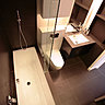 Dans la largeur (1,80 m) de la salle de bains, on a inséré la baignoire. C’est l’alimentation en eau de l’immeuble qui a déterminé la place précise des toilettes. On les a installées dans sa longueur (2,60 m) entre la baignoire et la vasque ; et pas d’autres possibilités pour tout caser. Et dans ce cocon, aux teintes sombres, on retrouve des traces et des couleurs de l’Afrique, entre cuir marron et terre anthracite… du carrelage en grès cérame et de la pierre de lave,