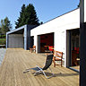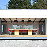 Cette construction familiale métallique offre une ré-interprétation de l’architecture des bâtiments agricoles régionaux. Bâtie en contre-bas du chemin de grande randonnée, elle respecte le paysage environnant sans briser la vue. Elle présente une transparence totale avec son système de patio-terrasse, lorsque les cloisons vitrées ne sont pas occultées. Mais elle affiche une réelle opacité dans le sens perpendiculaire. Elle est percée par une traversée de l'entrée principale à l'entrée privée des grands-parents, et dans l'axe d'un élément important du paysage. Et ici, tout le monde est logé à la même enseigne. Pour des raisons d’équité, l’enchaînement des quatre chambres et des deux salles de bains, le long de la pièce à vivre, ouverte au sud, est identique.