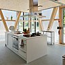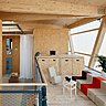 La résidence est équipée d’une verrière modulaire Velux, minimaliste et épurée. Avec six modules vitrés posés sur le toit plat du bâtiment, elle offre un éclairage maximum qui inonde la pièce commune de lumière naturelle. Les modules sont montés sur un système de rail métallique. La configuration à faible pente, dotée de 5° d’inclinaison est supportée par un système intégré de poutres. Chaque module s’ouvre pour garantir une bonne ventilation régulant naturellement la température intérieure. Les vitrages à faible émissivité offrent des coefficients particulièrement bas. La combinaison des profilés en composite pultrudé, renforcé de fibres de verre, à haute performance thermique et du double vitrage offre un coefficient thermique Uw de 1.4 Wm2/K.