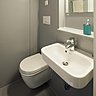 Pour l’aménagement des salles de bains, les séries d’appareils sanitaires Happy D.2 et Darling New de Duravit ont été choisies pour leur style jeune et gain de place. Les lavabos et les WC compacts sont adaptés à l’espace, où l’on a réussi à offrir le confort dans un volume réduit. L’eau chaude sanitaire est aussi produite par la pompe à chaleur. Quant aux chambres chambre, de 7 m² chacune, leur aménagement offre couchage et rangement, assure sommeil et tranquillité pour l’étude. La température de confort des chambres, oscille entre 20° et 26 °.