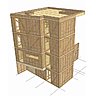« La maison bois possède de nombreux atouts économiques et écologiques : outre son action en faveur de l’environnement, elle nécessite peu d’énergie grise pour la transformation du bois. La rapidité et la précision des montages, la faible consommation d’énergie, grâce à ses qualités naturelles d’isolation, l’économie en temps et choix dans une large gamme de produits adaptés à tous les environnements, compose un habitat sain ». Cette maison se compose de panneaux et ossatures préfabriqués en OSB. Les planchers sont en bois massif BBS (panneaux préfabriqués et contrecollés, composés de plusieurs plis en bois massif lui assurent une bonne isolation thermique et phonique. Les menuiseries extérieures mixtes, en bois et aluminium, sont équipées d’un double vitrage. Les murs intérieurs sont revêtus de médium brut sans COV. Une cuve de récupération des eaux a aussi été installée.