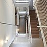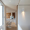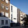 Le volume intérieur s’articule autour d’un escalier, véritable colonne vertébrale. Côté jardin, la maison, enclavée entre deux autres bâtiments, profite de la lumière naturelle largement diffusée par des baies vitrées qui s’ouvrent sur le jardin. Pour éviter les nuisances sonores de l’extérieur, les pièces de vie ont été implantées au 1er étage. Une terrasse, qui prolonge le salon et la cuisine, a été aménagée. Les 4 chambres, au second et 3ème étage, sont protégées par des rideaux en bambou de couleur sombre.