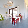 Les chambres sont dirigées au nord et à l’est, et cadrent des tableaux sur la nature. A l’intérieur, les murs sont nappés de blanc. Les objets décoratifs dessinent des touches de couleur qui contrastent avec le sol en béton poli et les fenêtres en bois. Dans la philosophie du style quaker, un goût de l’essentiel s’exprime dans des choix minimalistes qui dessinent une ambiance épurée, débarrassée du superflu.